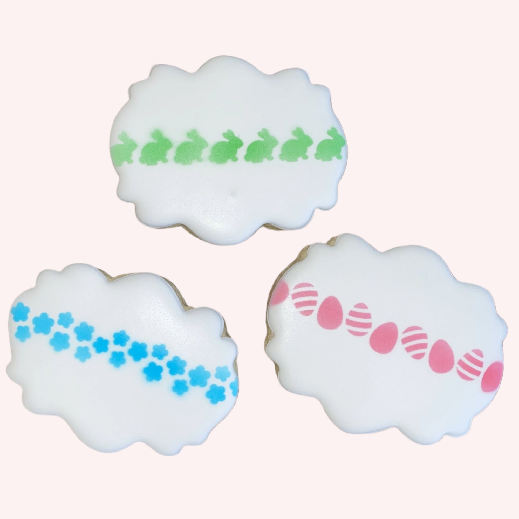 Our Egg Hunt Pattern Cookie Stencil Set features two coordinating stencils that are made on 5.5" x 5.5" templates. Decorate a colorful Easter Egg Hunt...