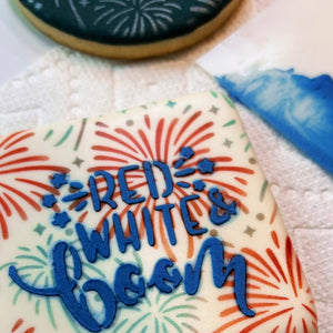 Decorate fun 4th of July Cookies with our Red White & Boom Cookie Stencil, a patriotic design featuring stars and fireworks. Available in two sizes:...