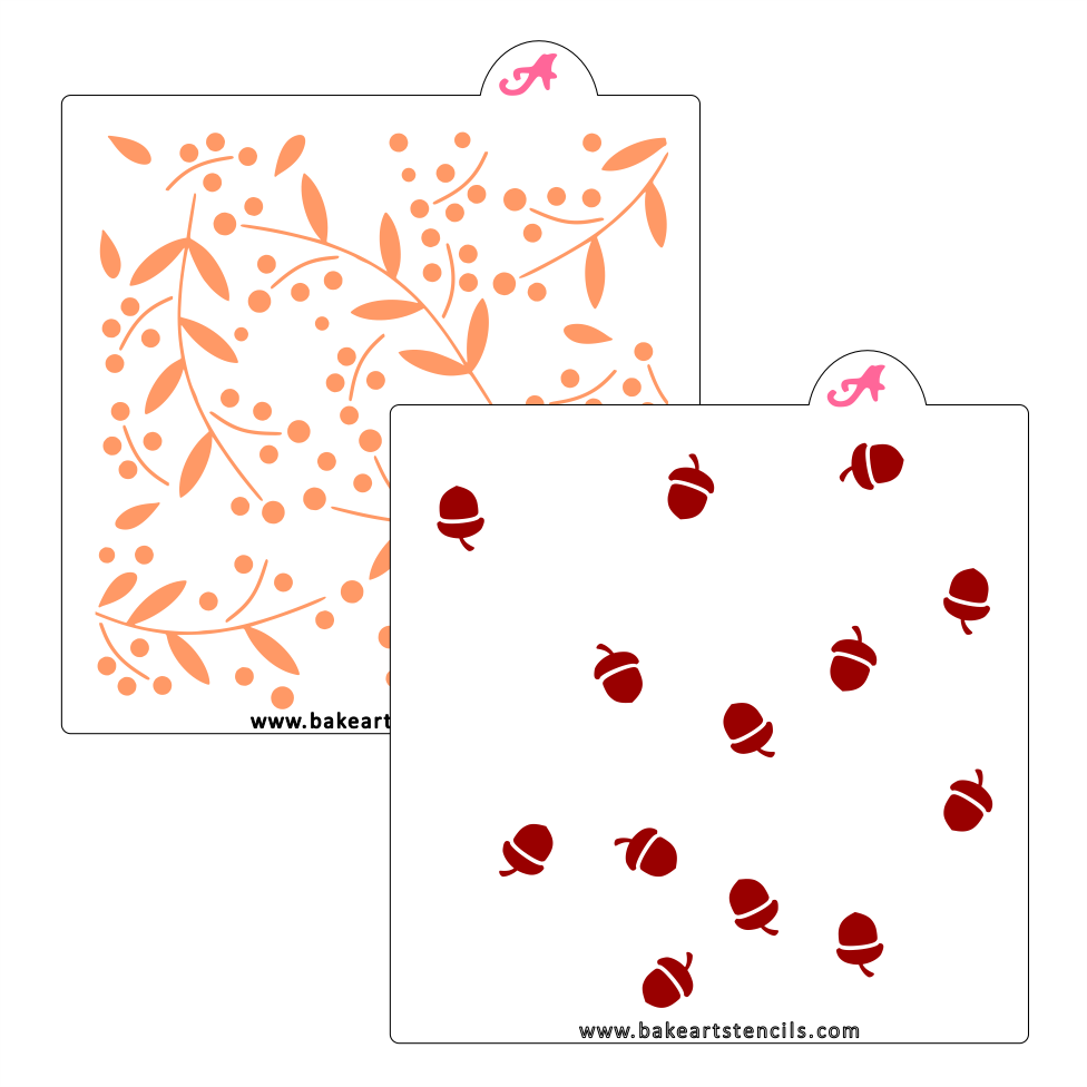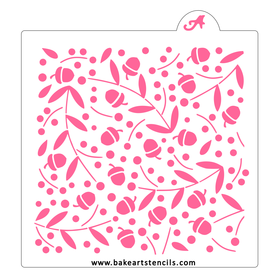 Autumn Acorns Cookie Stencil, use this modern-style pattern to decorate Fall sweets.