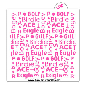 Our Golf Talk Pattern Cookie Stencil design features golf balls and tees and six words popular to the game, (Golf, Birdie, Ace, Eagle, Bogey and Par).